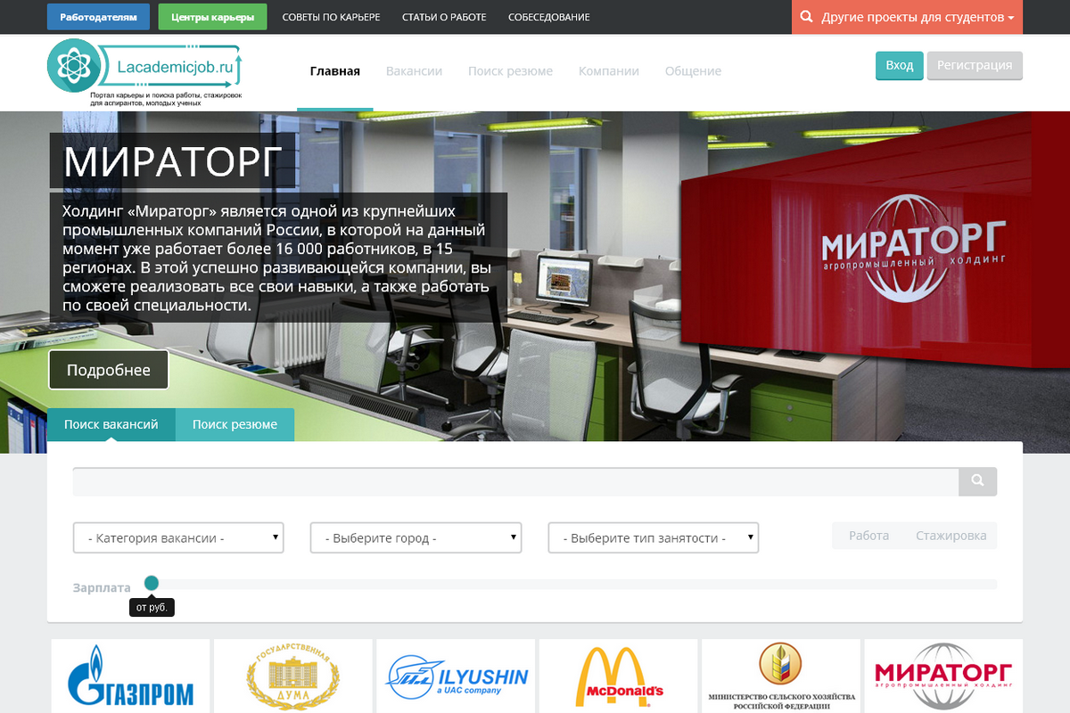 Масштаб деятельности компаний, размещающих вакансии на наших сайтах, дает широкие возможности карьерного роста и самореализации.